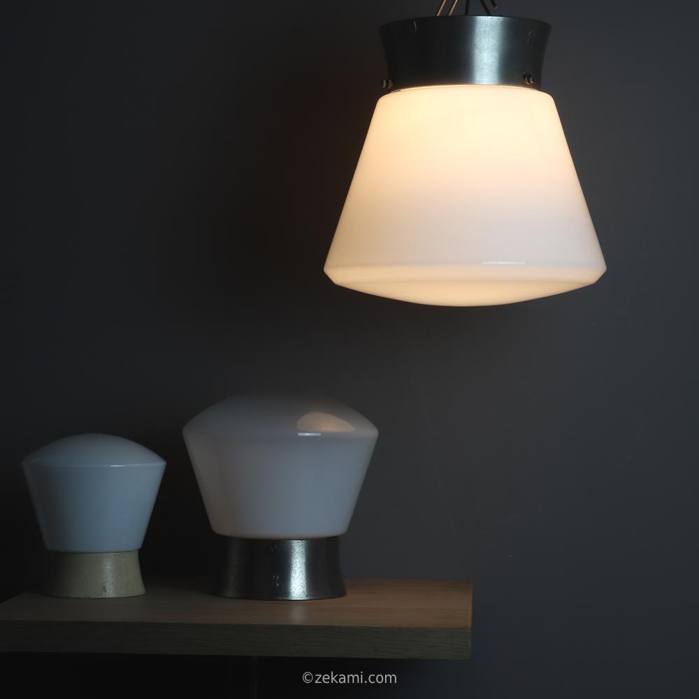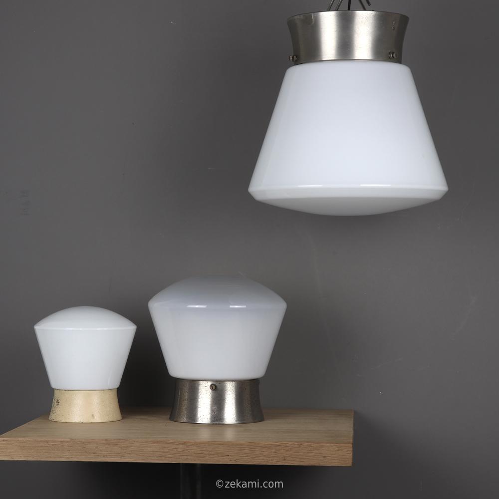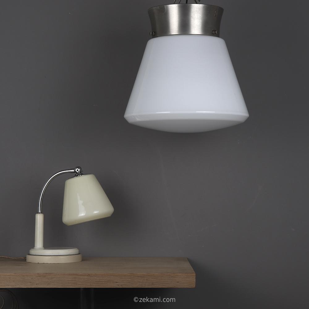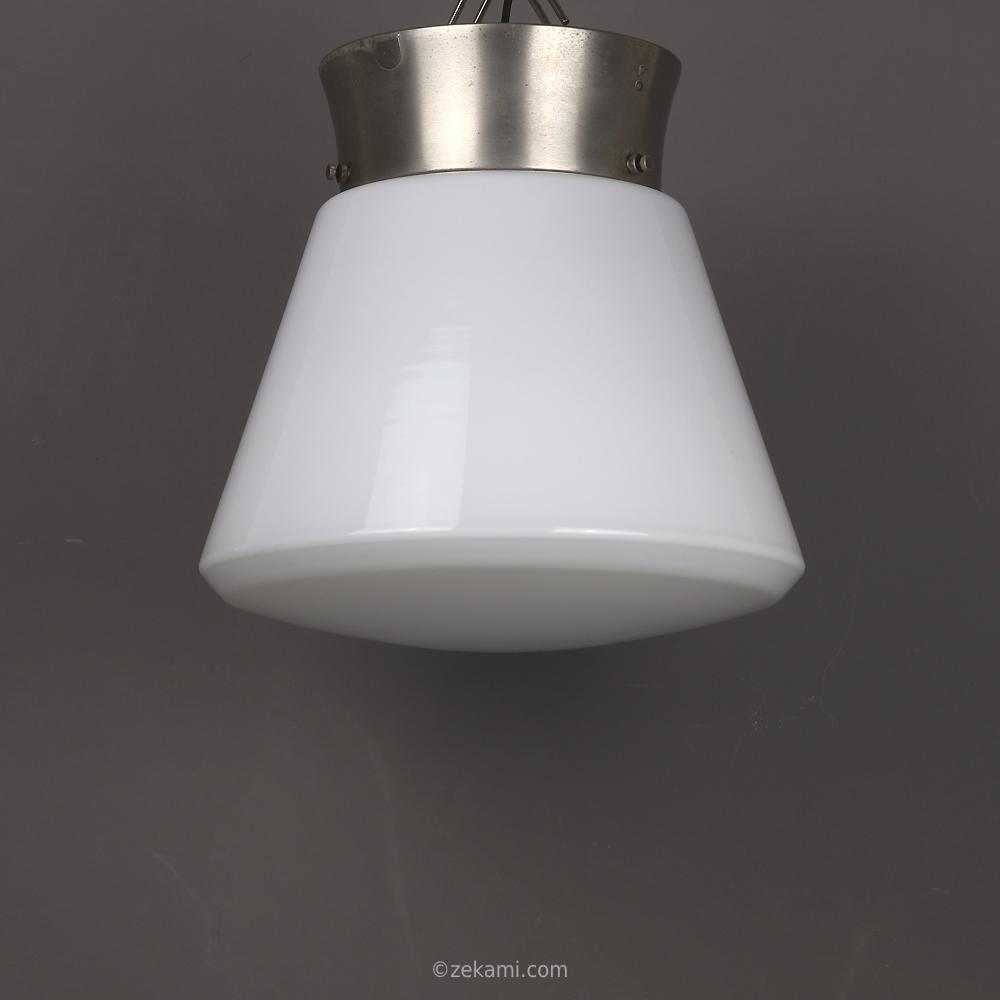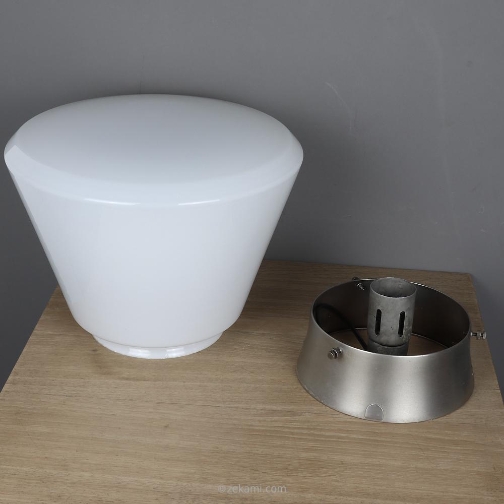 glocke aus opal-überfangglas, vernickelte messinghalterung und kandem metall-mantelfassung.
